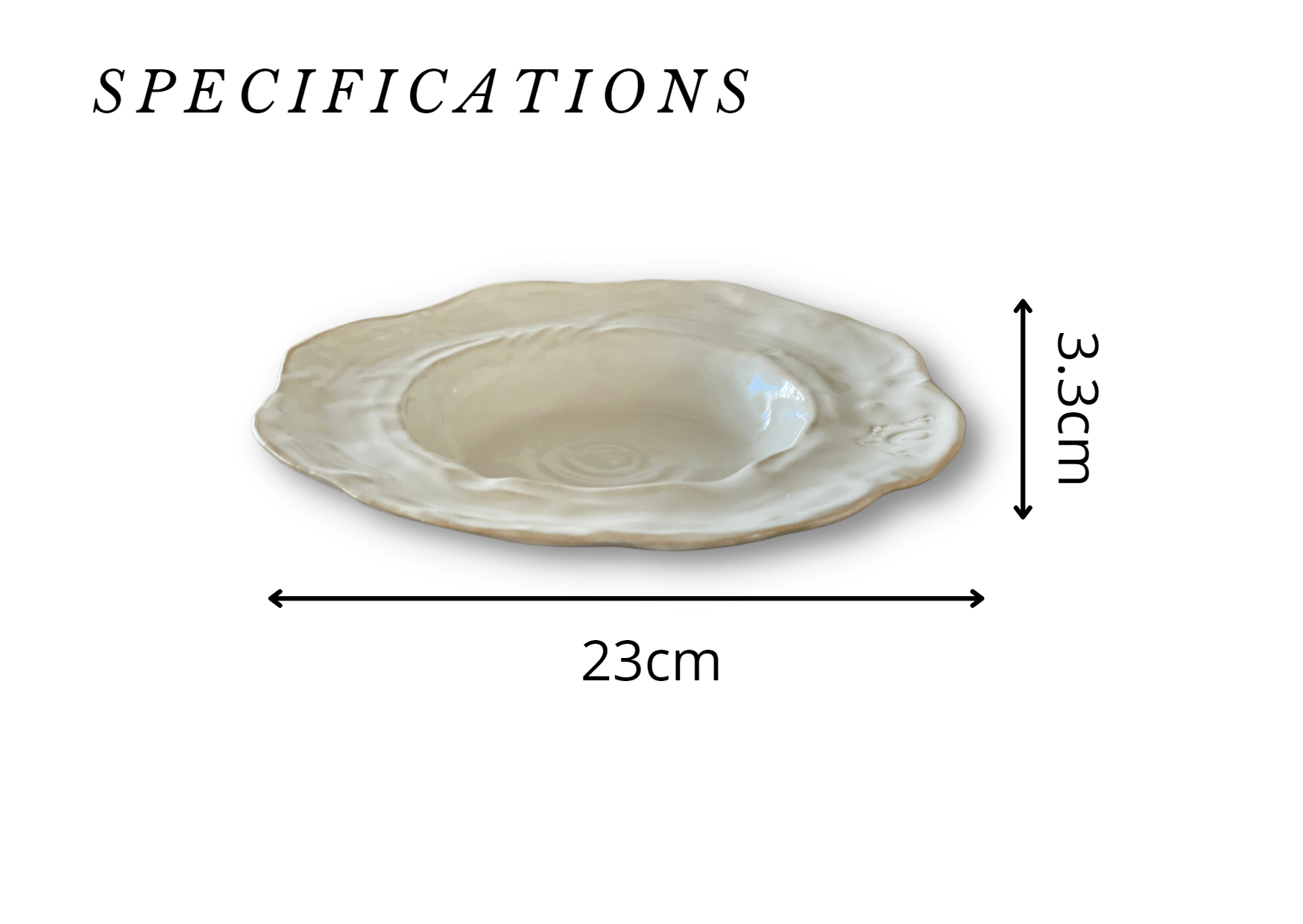 - D 23cm, H 3.3cm